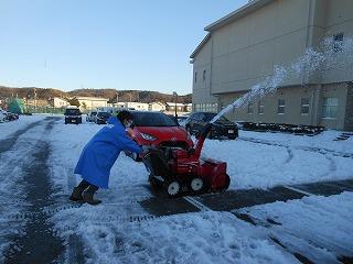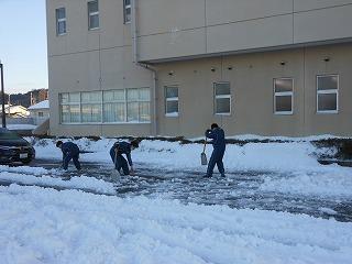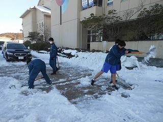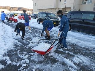 昨日の放課後、部活動の時間にボート部はトレーニングを兼ねて除雪活動に取り組んでくれました。本校の正面玄関は北向きで融雪が進まないため、今日の働く人に学ぶ会の講師駐車場を整備するため、頑張ってくれました。