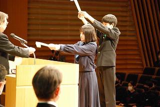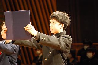 ▽記念品目録贈呈(2年1組 泉 蘭香さん)