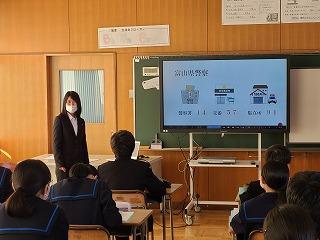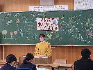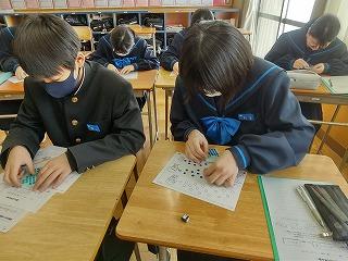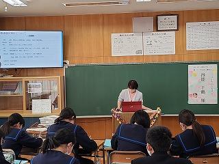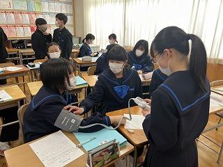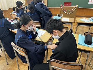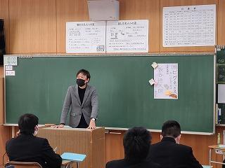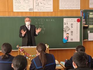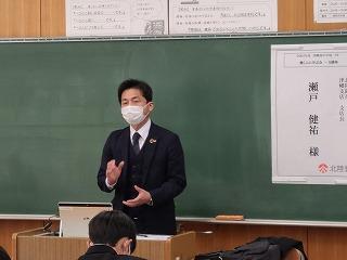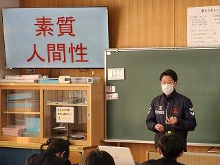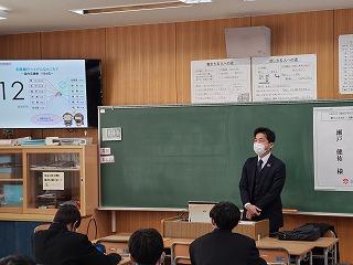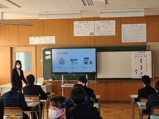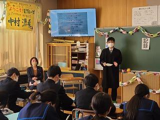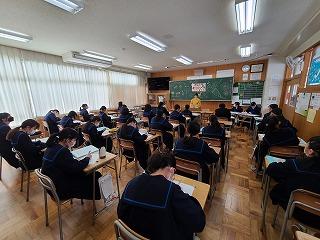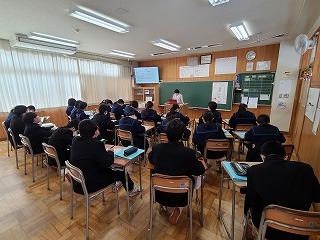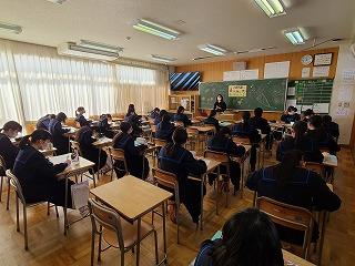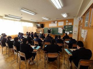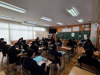 1年生では12名の講師の先生をお招きして、働く人に学ぶ会を行いました。生徒たちは6グループに分かれて、前半後半の2回、お話を聞きました。一人ひとりが役割を分担し、進行や記録、誘導、質問、お礼の言葉など、緊張しながらも立派に役目を果たしていました。また、実際に働いている方々のお話を直接お聞きすることで、来年度5月に実施する「職場体験学習」に向けても意欲が高まったようです。