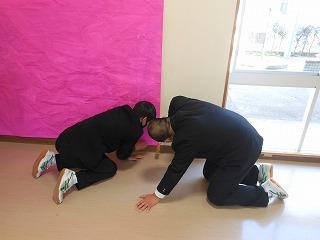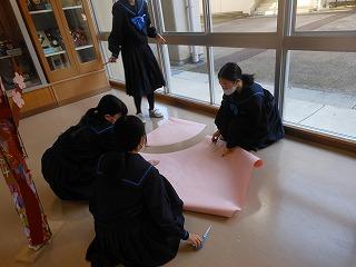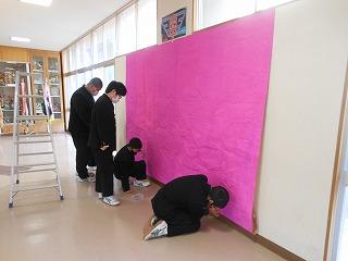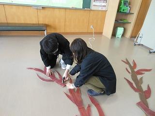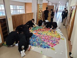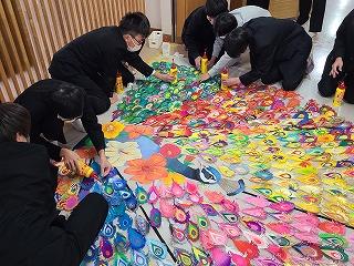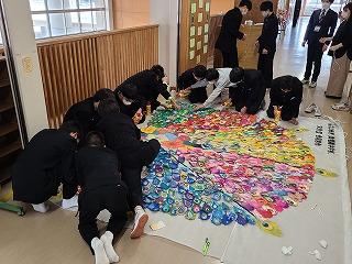 ▽3月1日 学校祭で制作した全校生徒のアート作品を1年4組の生徒たちが修復してくれました。