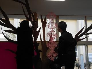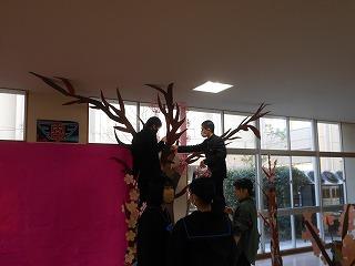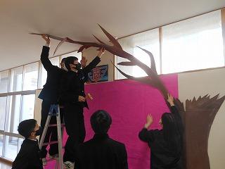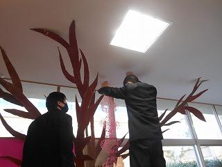 ▽2月28日(火)満開の桜にとりかかり、1日かけて立体展示が完成しました。