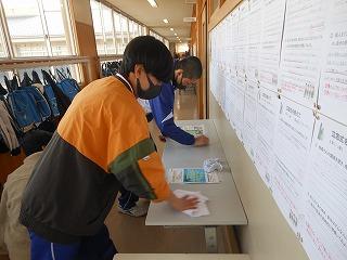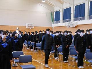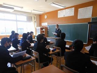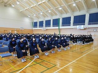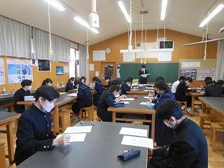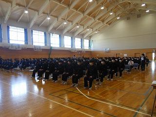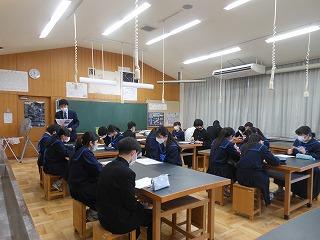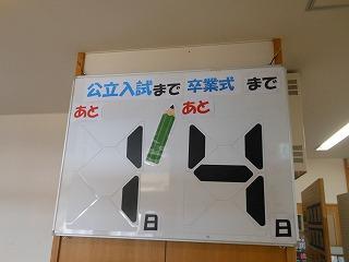 いよいよ公立高校一般入試。今日は授業2時間の後、学年集会と受検校別打合せを行いました。この後、給食を食べて、午後1時に完全下校となります。
