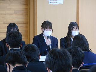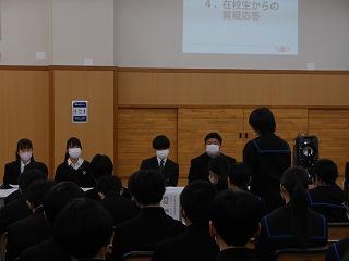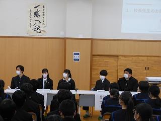 今日は公立高校の一般入試で、10名の高校2年生が母校の後輩のために来校くださいました。3年ぶりの開催で、中学2年生は先輩からじかに受験期の過ごし方や高校生活などのお話を聞き、今後の過ごし方を考え、自分の進路についてより一層真剣に考える機会となったようです。