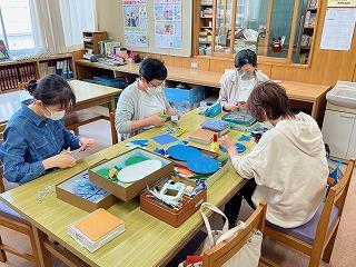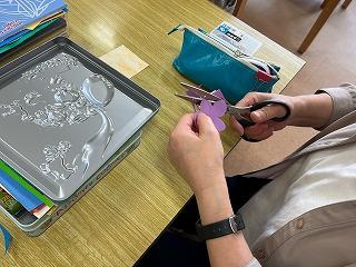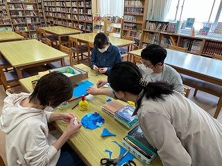 今日は午後から図書ボランティアさんが来校し、図書室の飾りつけを行いました。