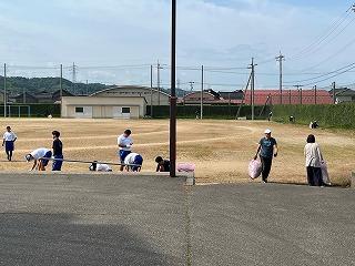 総勢190名程で校舎周りの除草作業を行い、歩道や中庭、自転車小屋やグラウンドがきれいになりました。