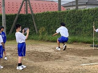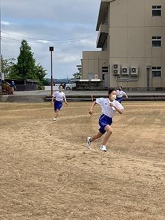 蒸し暑い日になってきましたが、体育の授業では生徒が元気に陸上競技に励んでいます。