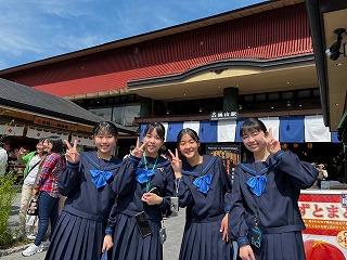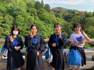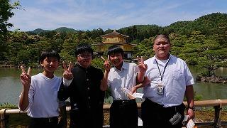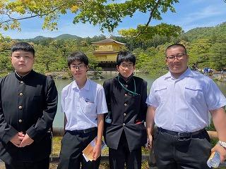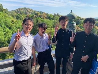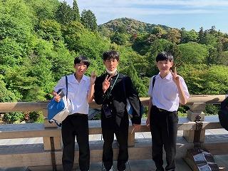 生徒たちは17:00に清水寺の駐車場に集合し、大阪キャッスルホテルに向けて、バスで移動を開始しています。