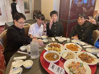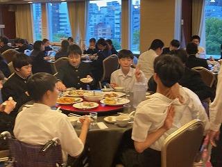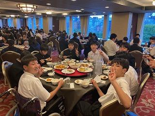 3年生は、京都からバスで大坂キャッスルホテル内の錦城閣に移動し、夕食を食べました。