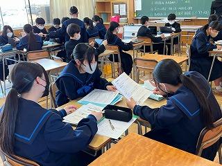 1年生は金曜日の校外活動、2年生は明日からの職場体験学習に備えて、打ち合わせを行いました。