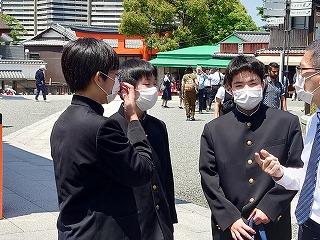 2023年5月10日 13時45分3年生たちはタクシーの運転手さんの案内で、自分たちの予定した自主プランを進めています。