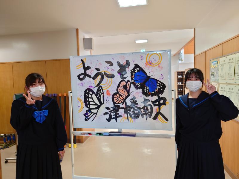 先日の河北郡の先生方の授業参観や、教育委員会訪問の時に、玄関で先生方を出迎えました。