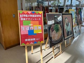 先週から、生徒玄関を入ってすぐの展示ホールにおいて、金沢学院大学附属高校芸術デザインコースによる生徒作品が飾られています。