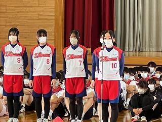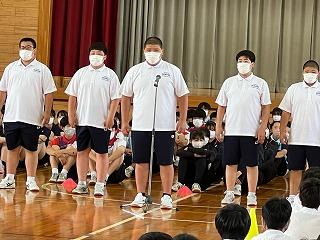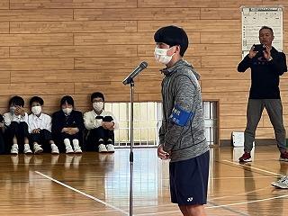 校長先生からは大会に向けて激励の言葉をいただきました。校長先生は選手の皆さんに気を付けてもらいたいことについて、①身体と心のコンディション作りに気を付け、大会までの授業や練習に励んでもらいたいこと、②大会では勝ち負けにはこだわらず、まずは自分の役割に徹してほしいということ、③日頃お世話になっている方々に感謝の気持ちを忘れずに大会に臨んでもらいたいこと、の3つが話されました。