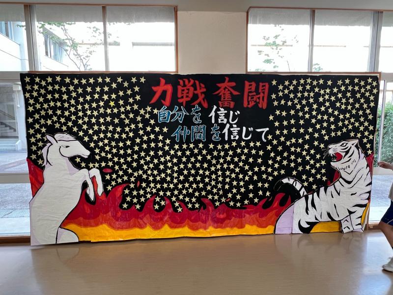 迫力のあるメッセージボードです。生徒もメッセージを読みながら、大会が近いことを感じています。