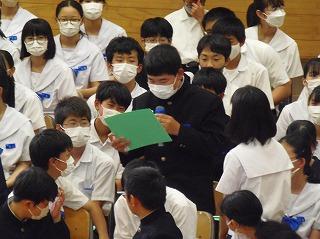生徒会長の石原さんからは自分たちの目標を達成できるように、一戦一戦頑張ってもらいたいと激励されました。