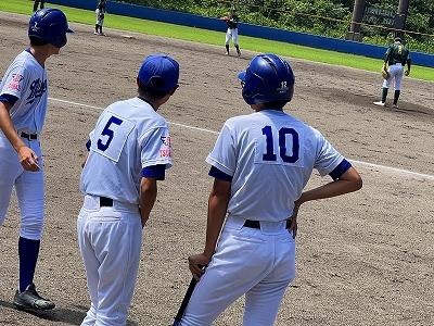 試合は1回、先行の内灘中が津幡南中の先発の萩君から四死球を選び、タイムリーヒットで先制、その裏、津幡南中も東君のスリーベースヒットからタイムリーヒットを放ち、同点とします。