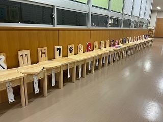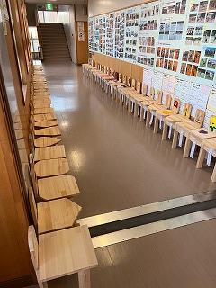 職員室前にずらりと並べられた椅子は、生徒だけではなく、我々職員の目も楽しませてくれます。