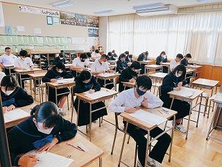 先日の中間テストから間もないテストとなりましたが、3年生は粘り強く取り組んでいました。