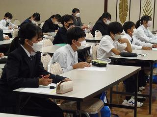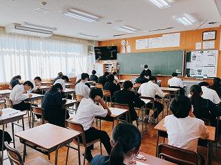 学校からバスで各高校に移動し、高校生活の概要説明を聞き、校舎内の見学を行いました。