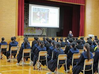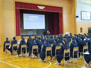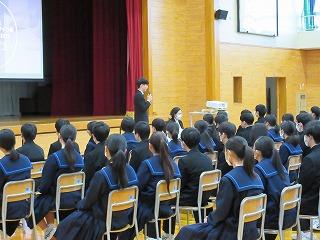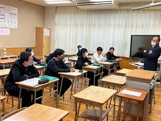 高校の学校説明のあと、今後の進路指導についての予定と、今年度の入試についての説明が進路担当の岡本先生からありました。推薦入試、一般入試、出願や合格後のことまで、詳しく説明があり、進路選択の日が近づいていることを強く実感することができたと思います。