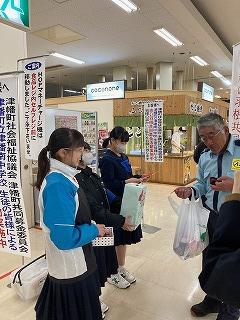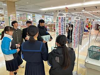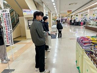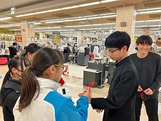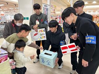 津幡町の社会福祉協議会の方々とともに、生徒たちは、買い物客に大きな声で募金を呼びかけていました。