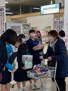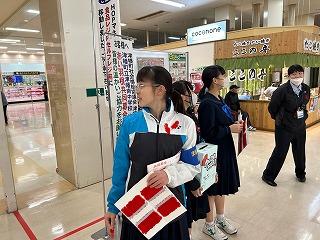 昨日放課後、16:00からアルプラザ津幡店において、本校生徒会が赤い羽根共同募金活動を実施しました。