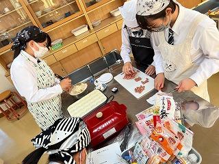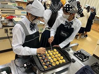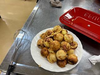 3グループに分かれ、クッキーとたこ焼き、クリームパンを作りました。
