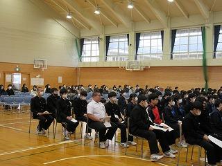 本日午後、体育館において3年生生徒と保護者を対象として、進路説明会が行われました。