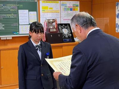 昨日の昼休み、校長室にて全国関税会連合会の令和5年度「税の標語」表彰式が行われました。