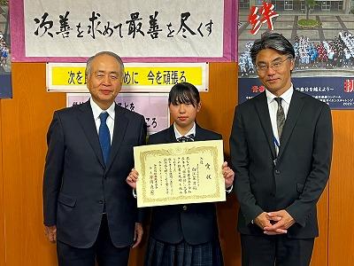 本校1年生白江菜月さんが全国49万点の作品の中から、入選に選ばれました。
