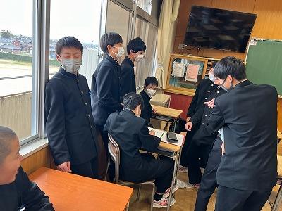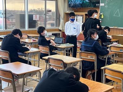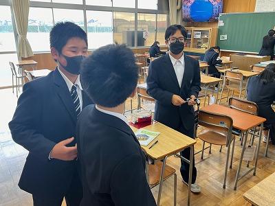 宇野さんは生徒との雑談の中でも、石川高専での学校生活の様子やロボット製作についての話を聞かせてくれ、本校の生徒たちも非常に興味深く話を聞いていました。