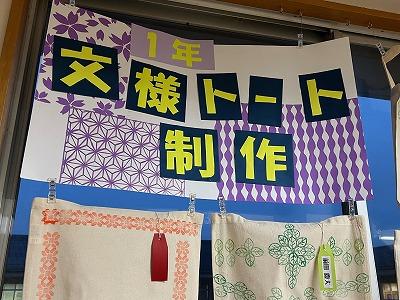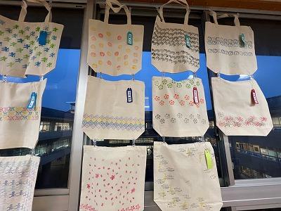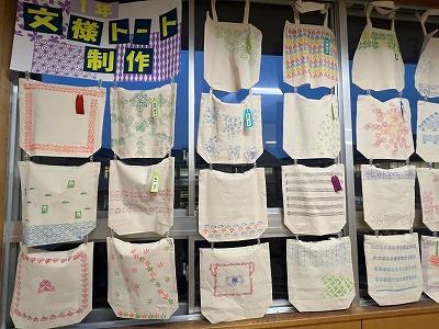 1年生は、自分で考えた文様をプリントしたトートバックを制作しました。