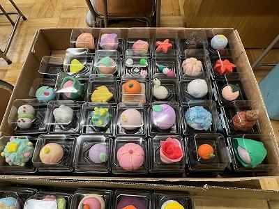 2年生は、樹脂粘土やレジンを使って、和菓子のサンプルを作りました。