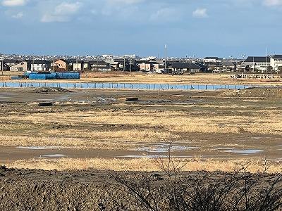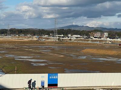 職員室前から、工事の進捗状況を見ることができます。現在は少しずつ整地が進み、排水関係の工事も始まっています。