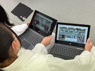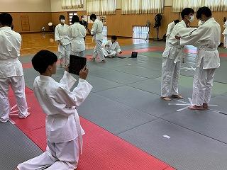 グループで動画を撮り合い、どうすれば効果的に技をかけられるかを話し合っていました。