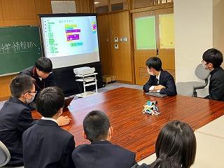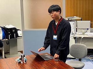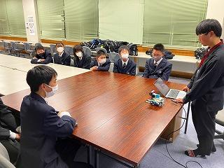科学情報部は、WRO大会の指導を、石川高専5年生の宇野さんから受けています。