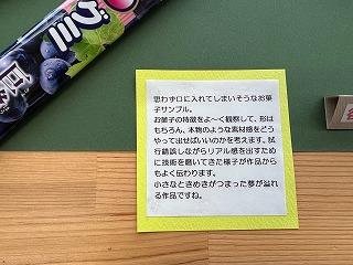 2年の谷口さんはいろいろなお菓子を粘土で作り、本物そっくりな作品に仕上げてあります。