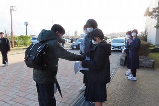 本日と明日、津幡南中学校では、能登半島地震の被災者のために、生徒会や有志の生徒たちが募金活動を行っています。