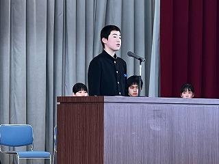 また、2年生へ向けて、「学校の様子を見るには、その学校の3年生を見ると一瞬で判断できる、だから、3年生は学校の顔なのである」という言葉を述べられ、3年生に向けての自覚を促しました。