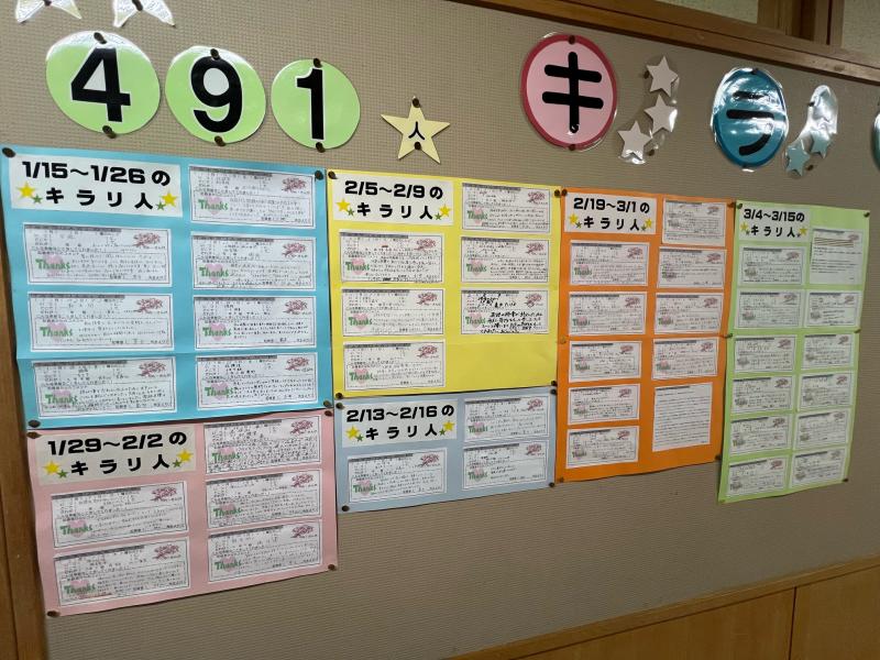 ▽今年度も多くのキラリ人カードが集まりました。少しの善い行いは、多くの善い行いを生みます。