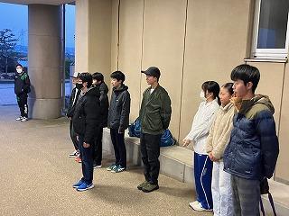 日の出前の午前6時、早朝にも関わらず、他の部員たちが見送りに来てくれました。