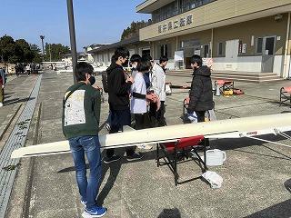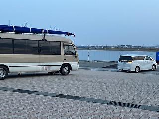福井県美浜町の福井県立久々子湖ボートコースに到着。卒業生も応援にかけつけてくれました。