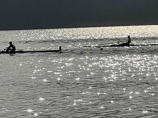 午後からは、講習会があり、プロからの指導を受けます。明日は、出場クルーをミックスしてチーム分けを行い、舵手付クォドルプルの交流戦を行います。それに向けてのチーム練習が講習会後に行われます。