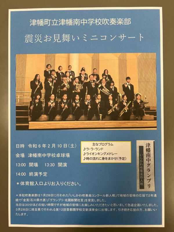 本校吹奏楽部は、地震による休校期間などで練習時間が限られる中、「いしかわ吹奏楽コンクール新人戦」で金賞(石川県代表)、グランプリ・北國新聞社賞を受賞し、3月に埼玉県で行われる第12回首都圏交歓演奏会に参加することが決まりました。
