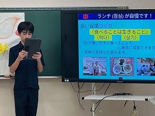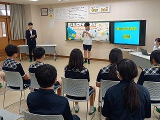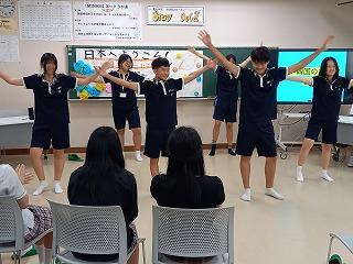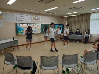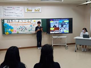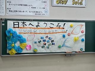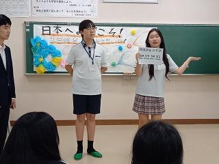 1、2年生が中心となって歓迎の会を開き、それぞれ日本と韓国の中学校について紹介し合いました。