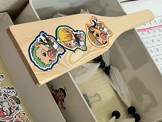 羽子板にマジックやシールで装飾し、中庭で羽を打ち合いまし。中庭にコーン!コーン!と羽を打つ軽快な音が響きます。