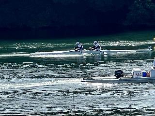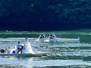 男子ダブルスカル敗者復活から雷の危険が高まり、残りの競技は中止となりました。男子ダブルスカル、男子舵手付きクォドルプルは予選のタイム順での上がりとなり、残念ながら準決勝進出とはなりませんでした。