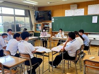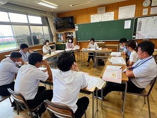 生徒の考えを引き出すための展開について考え、導入はどうするか、効果的な発問はどのようなものが考えられるか、また、どのような終末にするのかなどが、活発に話し合われました。
