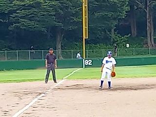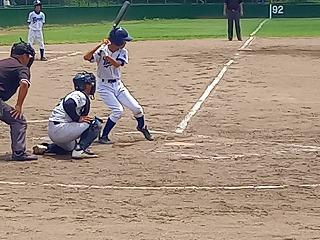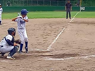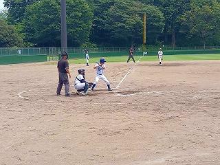 試合は最近好調の萩さんのタイムリーで南中が先制。盗塁等を絡め、1・3塁になり、1塁ランナーが挟まり、挟殺プレーの間に萩さんが本塁へ帰ってきて2点目が入りました。