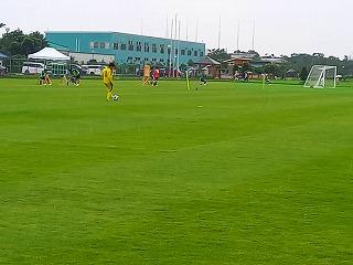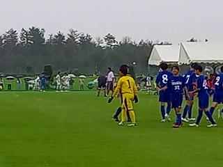 少し雨交じりの天候の中、午前9:30にキックオフ。南中の選手たちは粘りを見せ、前半は0-0で折り返します。